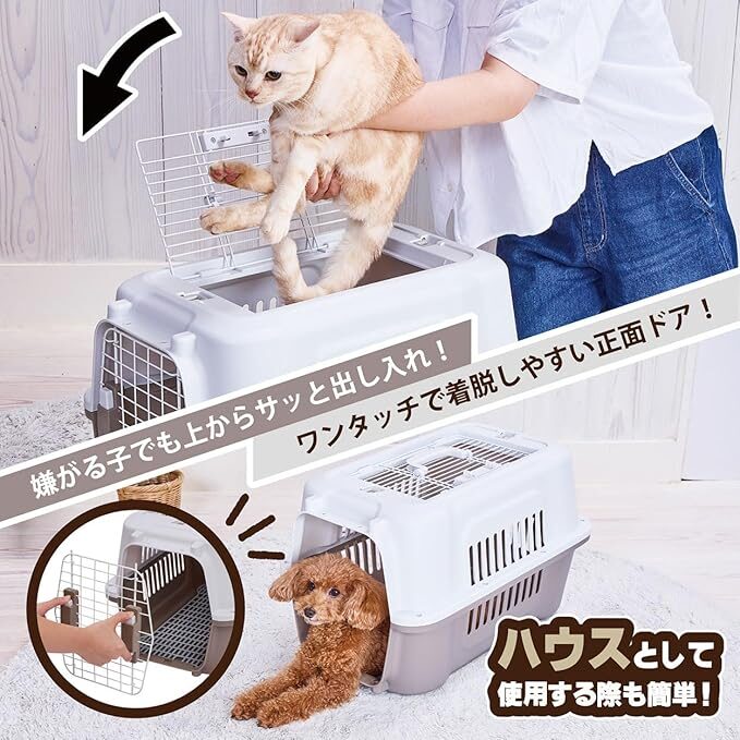 最初は扉を開けたまま、中におやつやブランケットを置いて、クレート=安心できる場所 と自然に感じさせるところから始めましょう。
