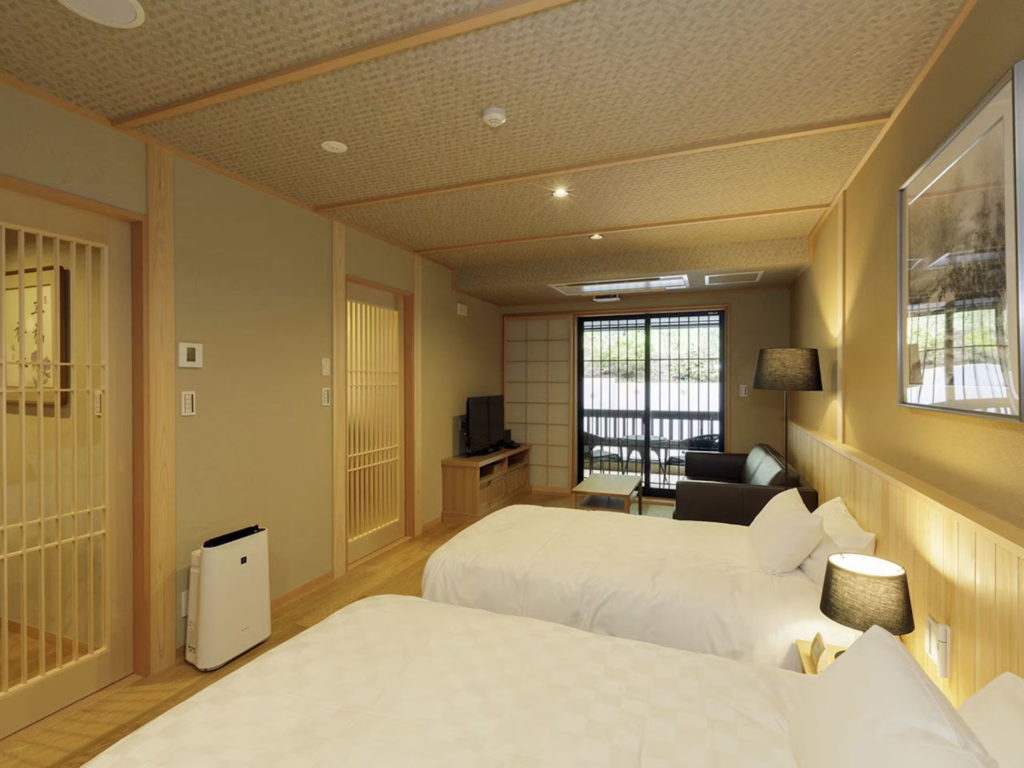 モダンで快適なデザインの客室があり、リラックスできる空間が提供されています。いくつかの客室は、愛犬と一緒に泊まれるペットフレンドリーなプランも用意されています。
