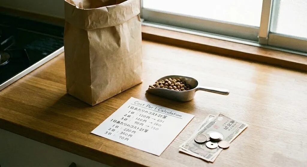 どんなに良いフードも続けられなければ意味がありません。パッケージ価格だけでなく、「1g単価」や「1日分の給与量」からコストを計算し、無理なく毎月買い続けられる価格帯の中で最良のものを選びましょう。