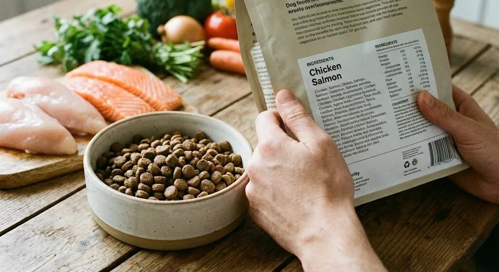 原材料は使用量の多い順に記載されます。パッケージ裏面を見て、先頭に「チキン」「ラム」「サーモン」などの具体的な動物性タンパク質があるものを選びましょう。穀類が先頭に来ているフードは、カサ増しされている可能性が高いです。