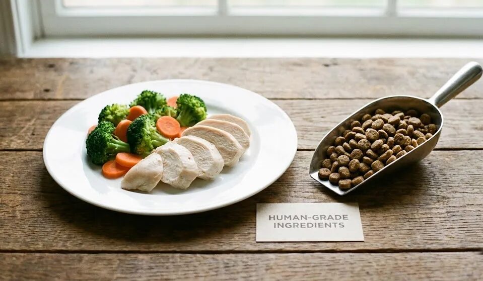 「○○ミール」といった表記には、低品質な肉が含まれるリスクがあります。「ヒューマングレード」と明記されたフードなら、私たち人間が食べる食材と同じ衛生基準で作られているため、安心して与えることができます。