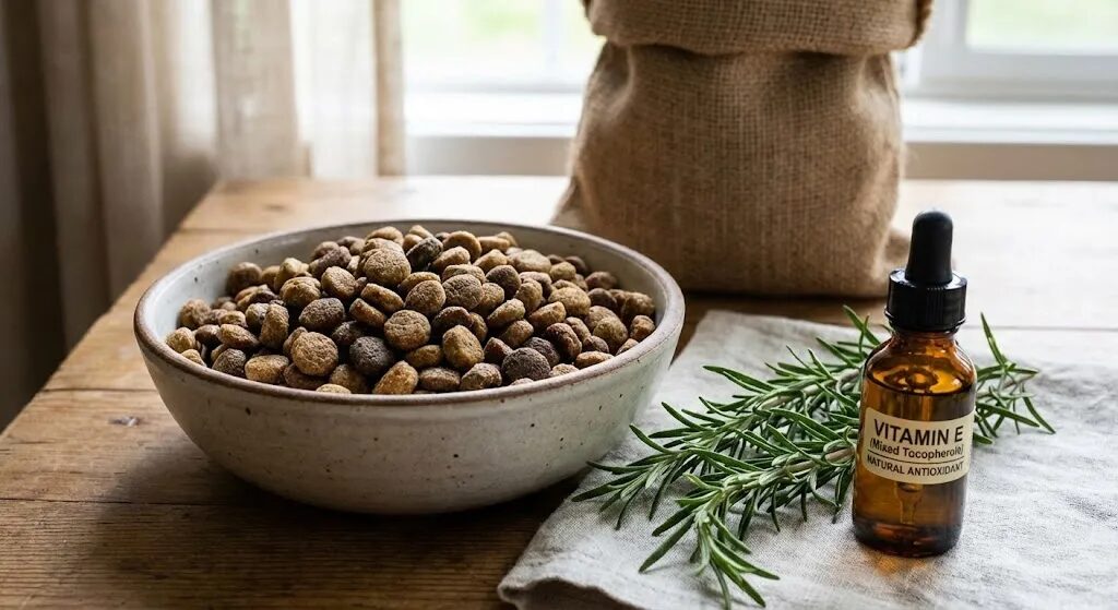着色料や発色剤は、犬の食いつきには無関係な「不要物」です。また、BHA・BHTなどの強力な合成酸化防止剤も避けたいところ。ビタミンEやハーブなど、天然由来成分で酸化防止しているものが安心です。