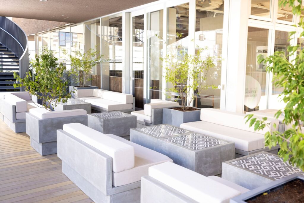 自由が丘のテラス席は椅子・ベンチ利用が多いため、